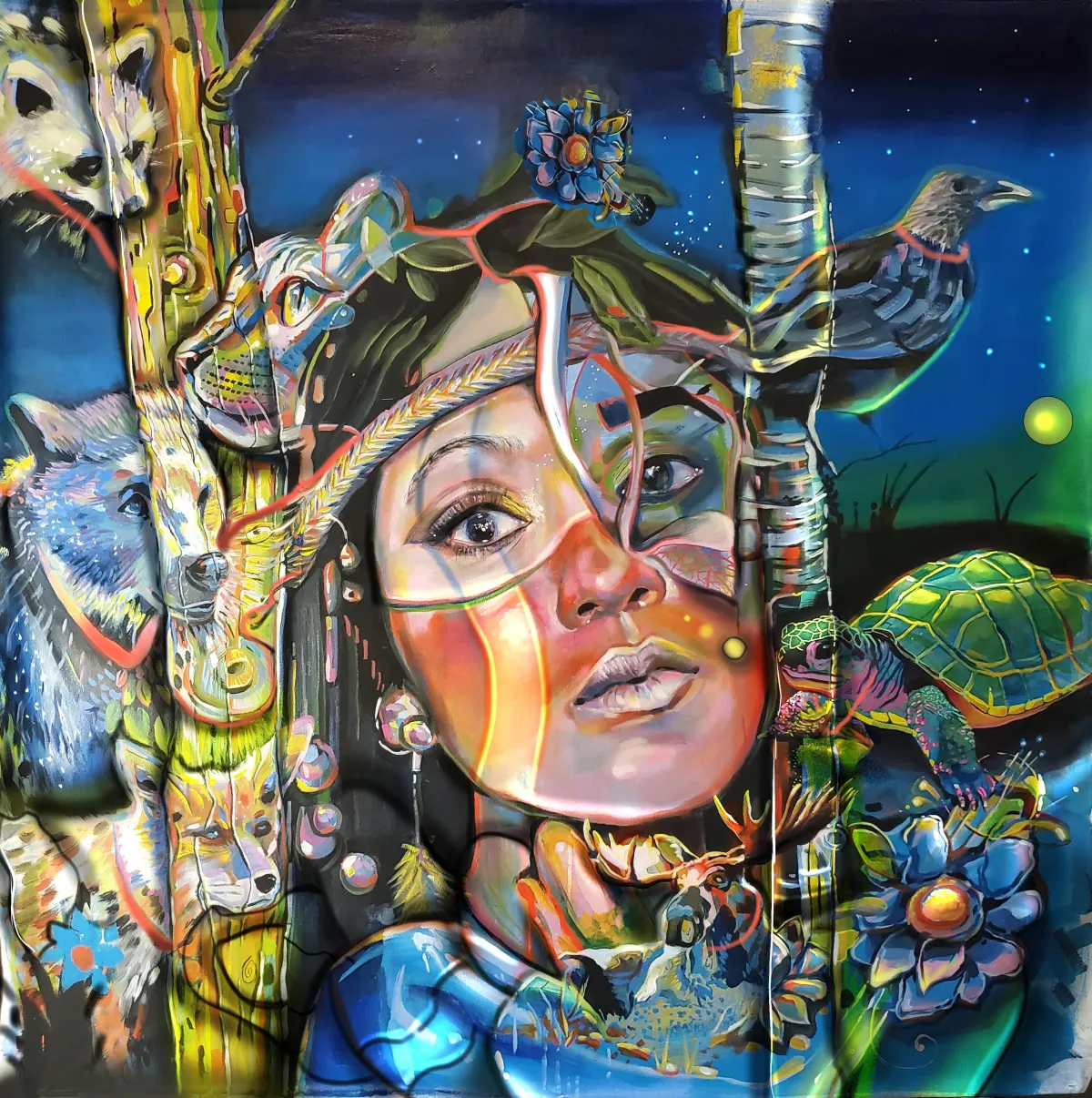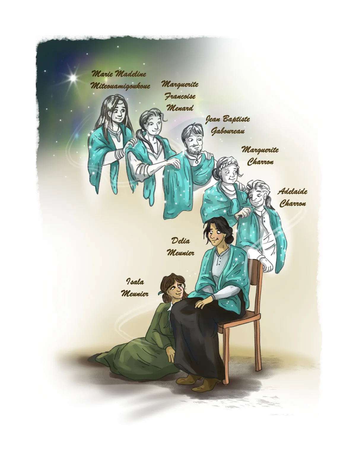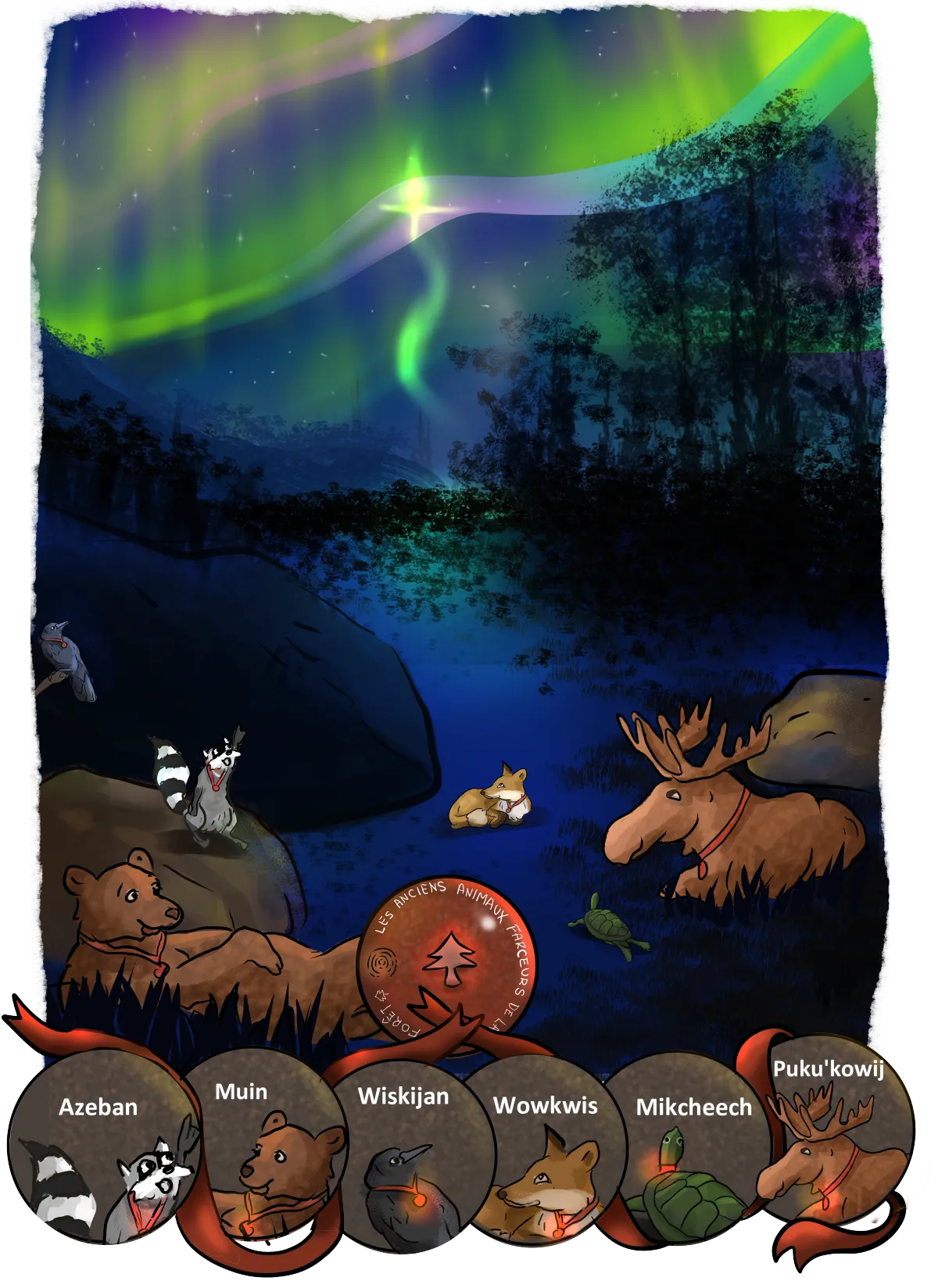 In this scene of Old Grandmother's Tree, the trickster animals are introduced for the first time. They have been around for centuries, as they are spirit animals that will always remain throughout the book series that takes place during different time periods. They are symbol of light, fun, guidance and safety, always portrayed in a quirky setting to bring an uplifting feeling throughout the stories. Each trickster animal wears a talisman that symbolizes their difference among regular animals.